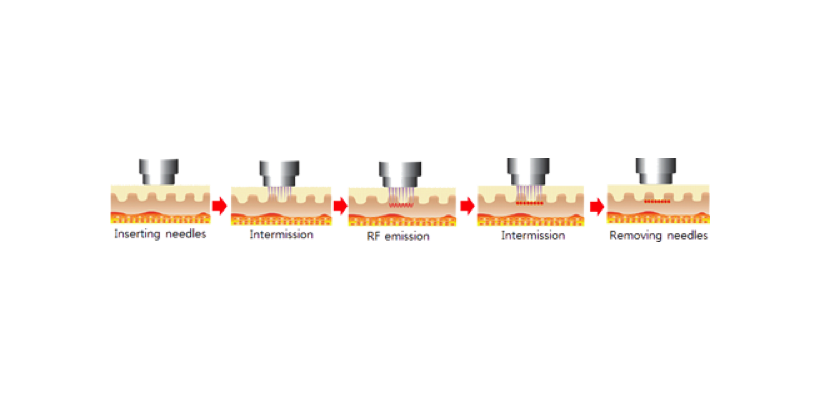 The radio frequency micro-needling device delivers heat, which affects collagen in the deeper layers of the skin. This causes deep structures of the skin to tighten, and over time, new and remodelled collagen is produced.